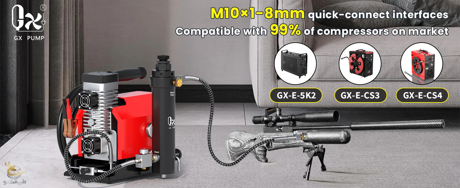 برای سازگاری بالا، فیلتر جی ایکس با رزوهی M10×1 و اتصال سریع 8 میلیمتر طراحی شده است، طوری که تقریباً با همهی کمپرسورهای PCP موجود بازار (بالغ بر 99٪ آنها) سازگار است و معمولا نیازی به آداپتور اضافی ندارد.